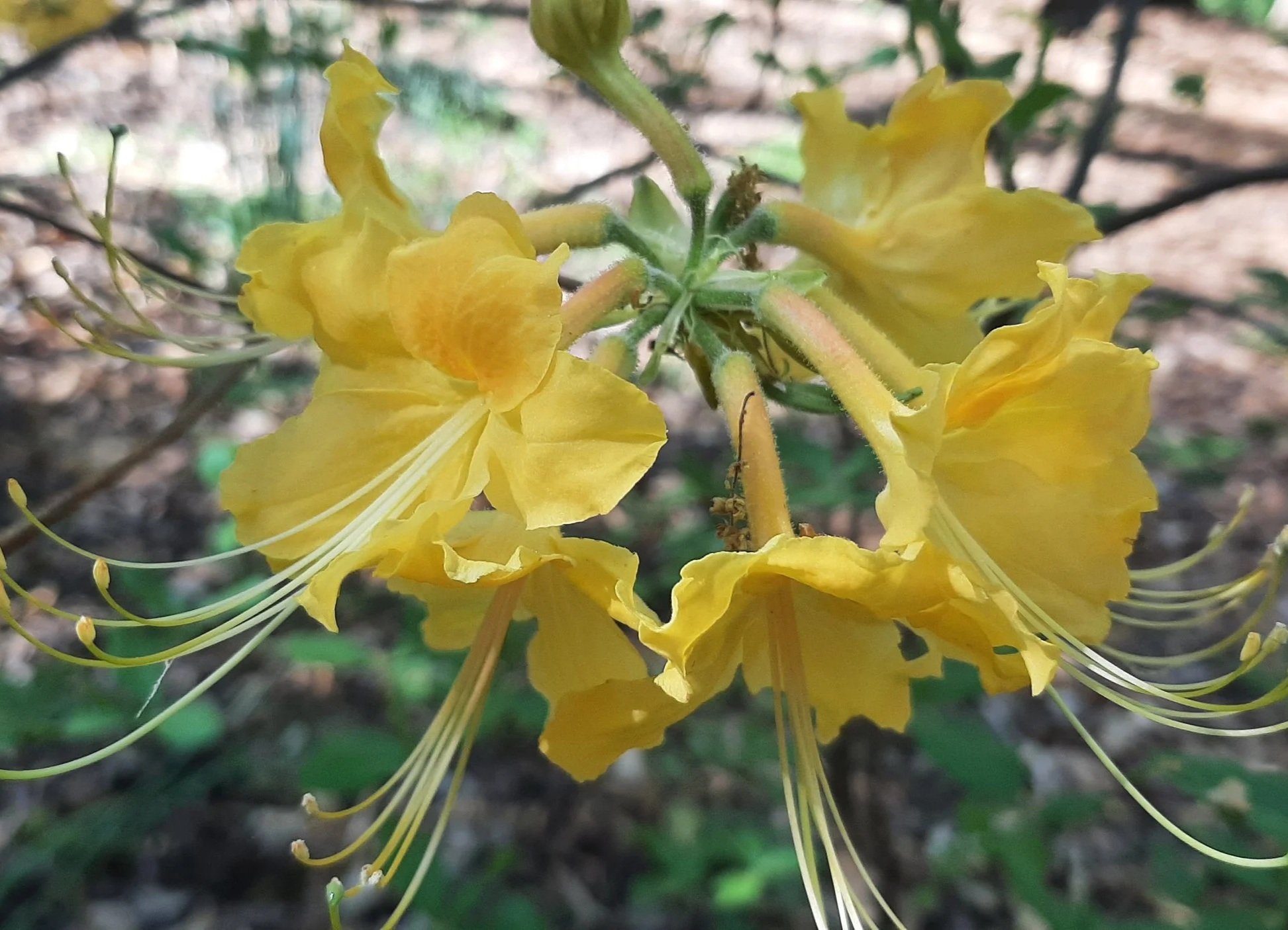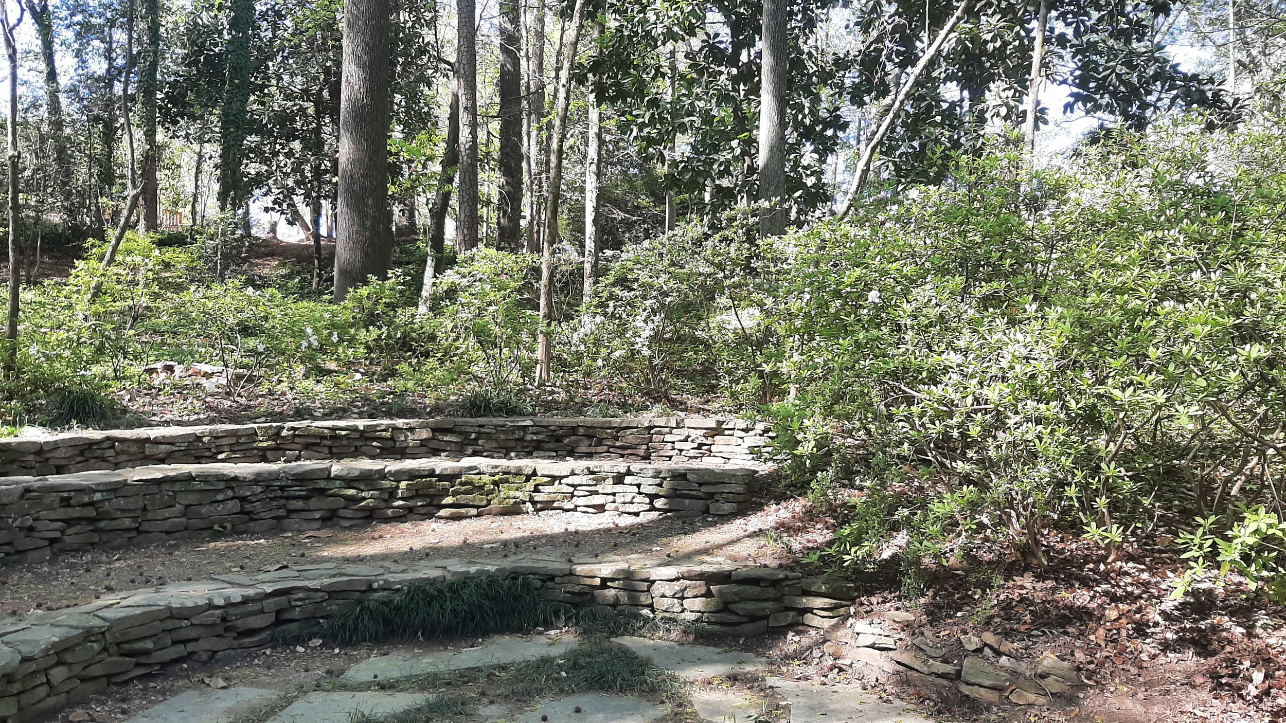 One of the joys of Spring is when the azaleas awaken and explode with color. While the main grouping of azaleas and rhododendrons are gathered in the Walter Soderberg Ericaceous Collection, azaleas are scattered throughout the garden. (Walter Soderberg helped founder Harold Hatcher establish Hatcher Garden by building ponds, planting and renovating the house which became the Hatcher Garden Office.) Brilliant yellow, orange, red, magenta, pink and white flowers of various sizes provide exuberant colors in the garden. The John A. Nevinson Teaching Amphitheater, which sits on the Thomas W. Bartram Trail, is partially surrounded by the collection, particularly a wall of large white flowered azalea bushes. Hurry, come see the show while it lasts.